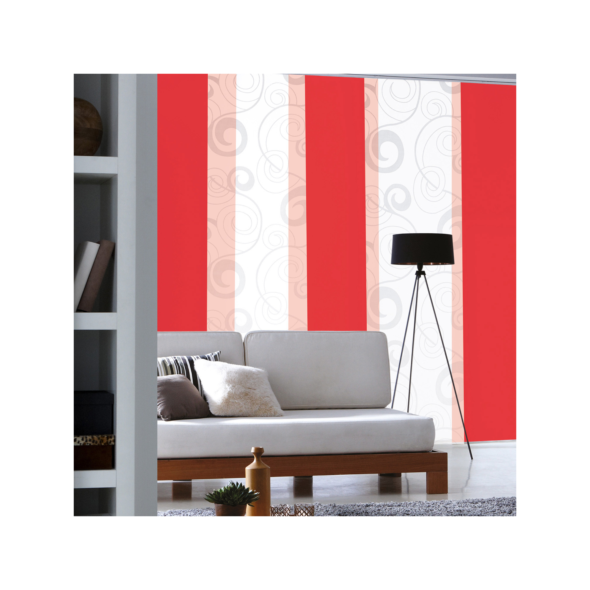 Panneau en tissu avec bande auto agrippante (rail non inclus). Solution idéale pour habiller une baie vitrée, séparer un pièce ou cloisonner un placard.