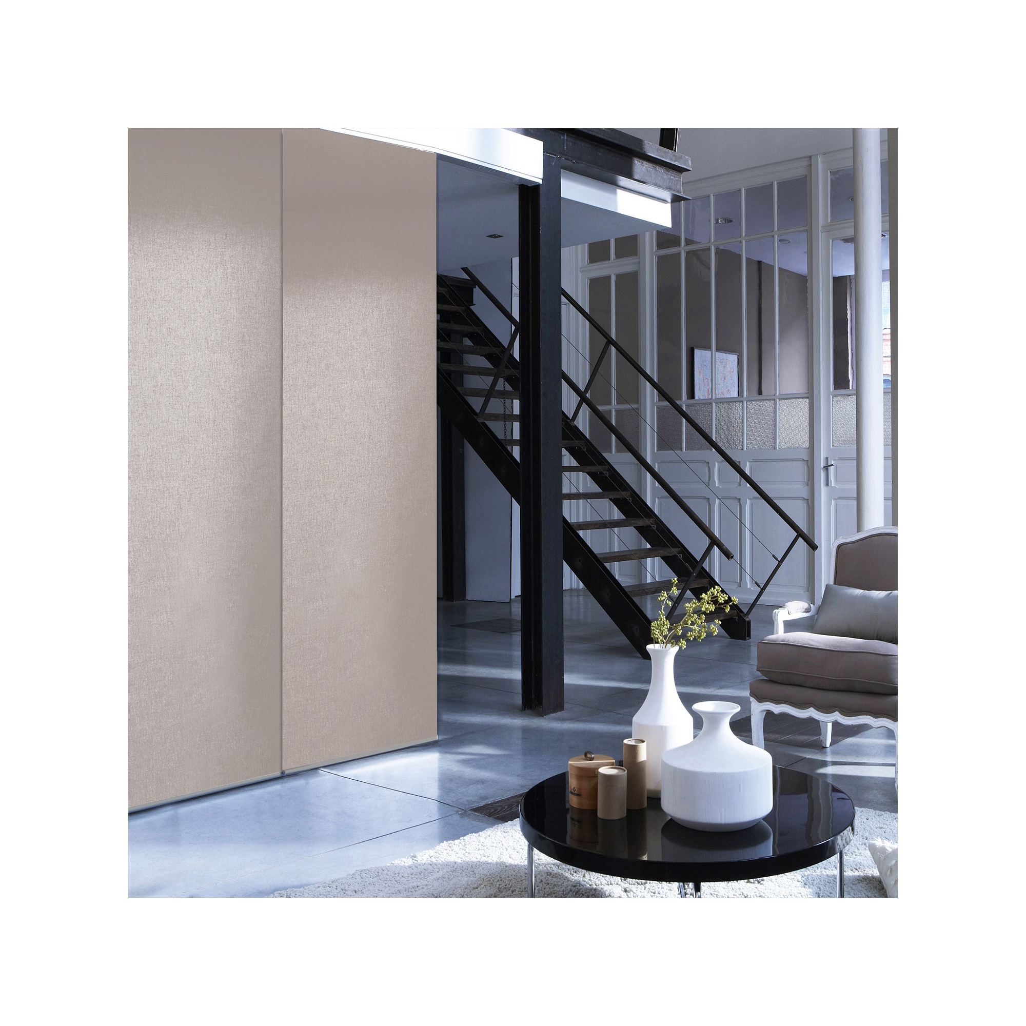 Panneau en tissu avec bande auto agrippante (rail non inclus). Solution idéale pour habiller une baie vitrée, séparer un pièce ou cloisonner un placard.