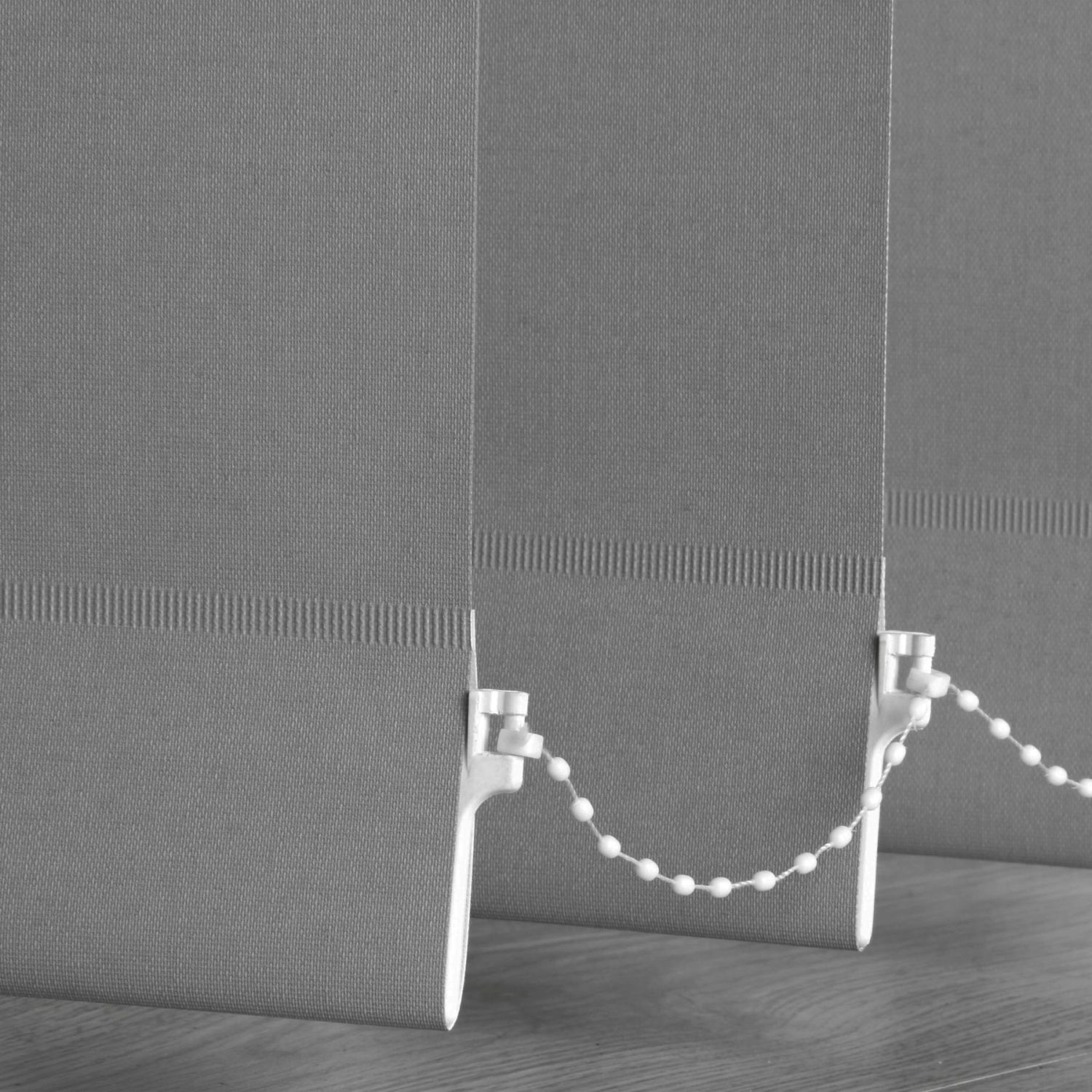 - Mécanisme à chaînette en PVC /cordon lesté par un contrepoids assortis au rail : blanc ou gris