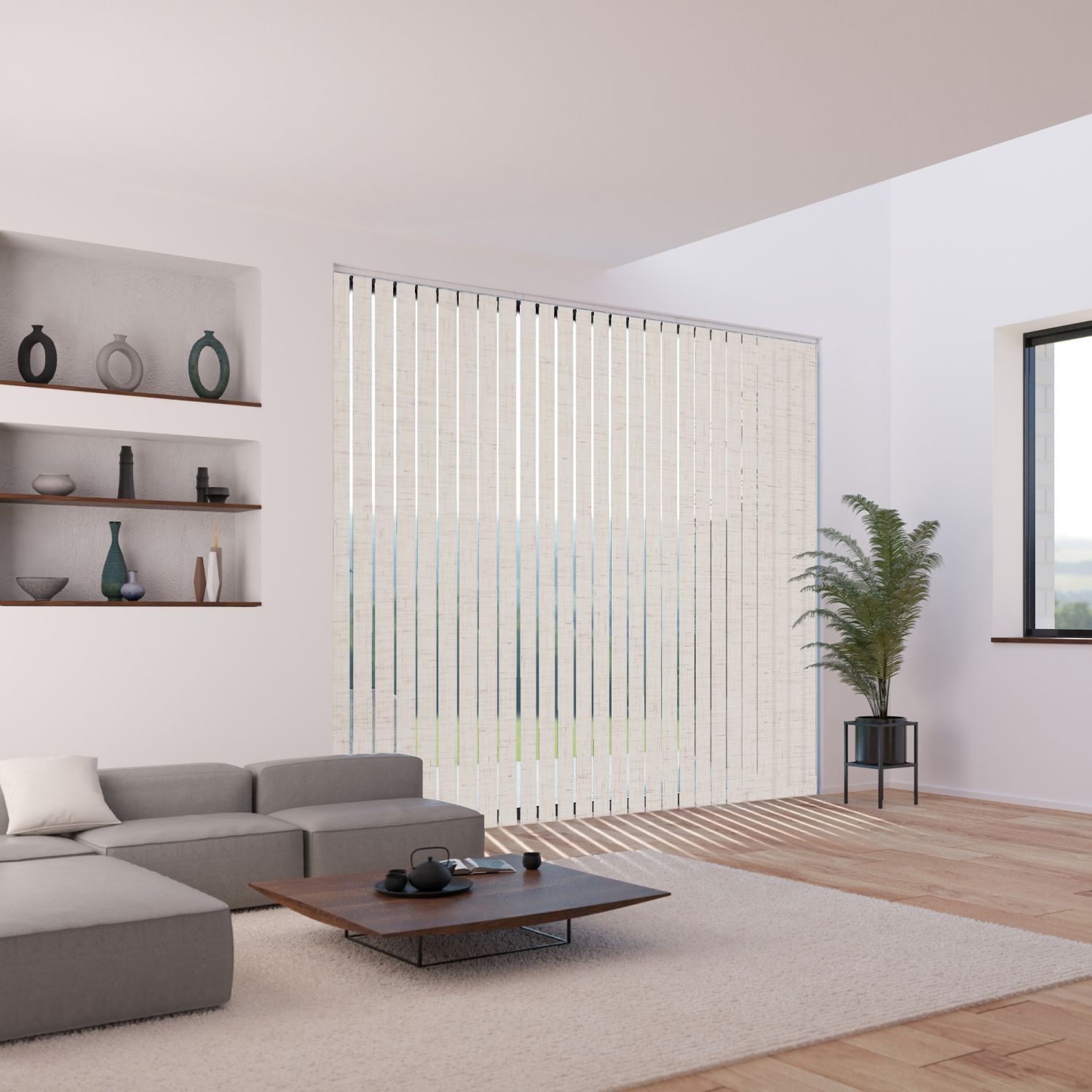 Habillez vos fenêtres élégamment avec le lot de 5 lamelles verticales 89mm tamisantes avec ce tissu effet chiné très tendance pour store californien avec système de lestage à poches sans chainette.