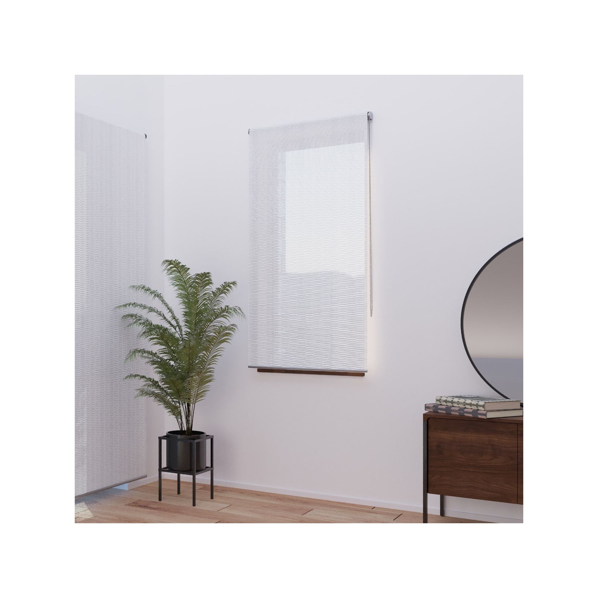 Nous recommandons de laisser un tour de tissu enroulé lorsque le store est entièrement descendu pour le rendu esthétique et le maintien du tissu. Merci de tenir compte de cela dans le choix de la hauteur de votre store.