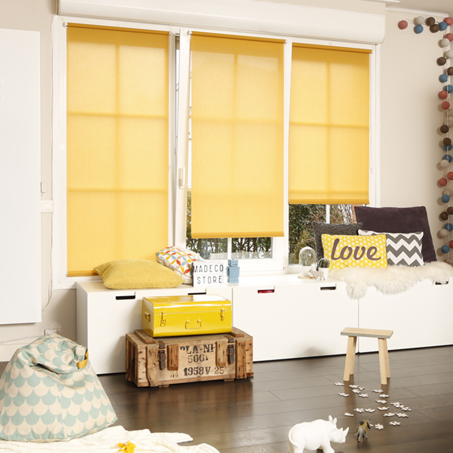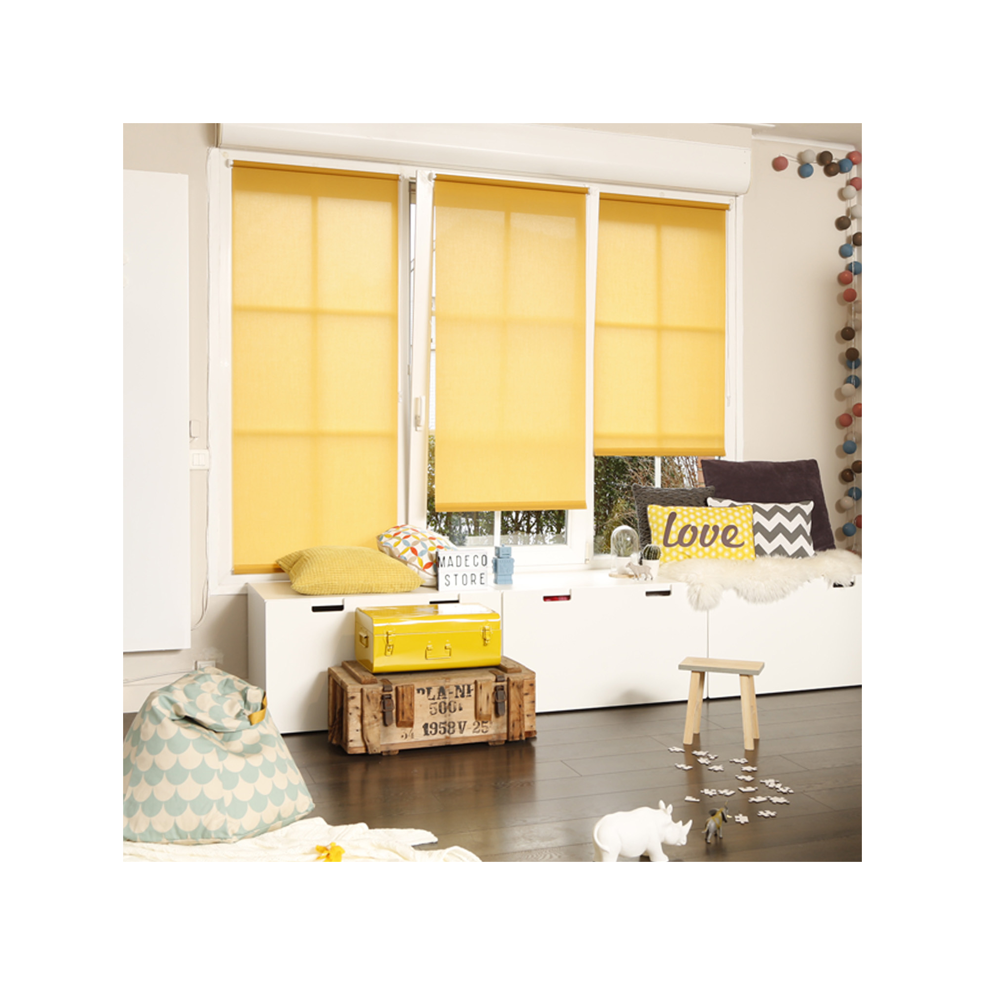 • Le store enrouleur tamisant uni laisse entrer le jour dans vos pièces de vie et vous protège des regards indiscrets. Ce store est facile à installer avec un système sans perçage à clipser inclus.
