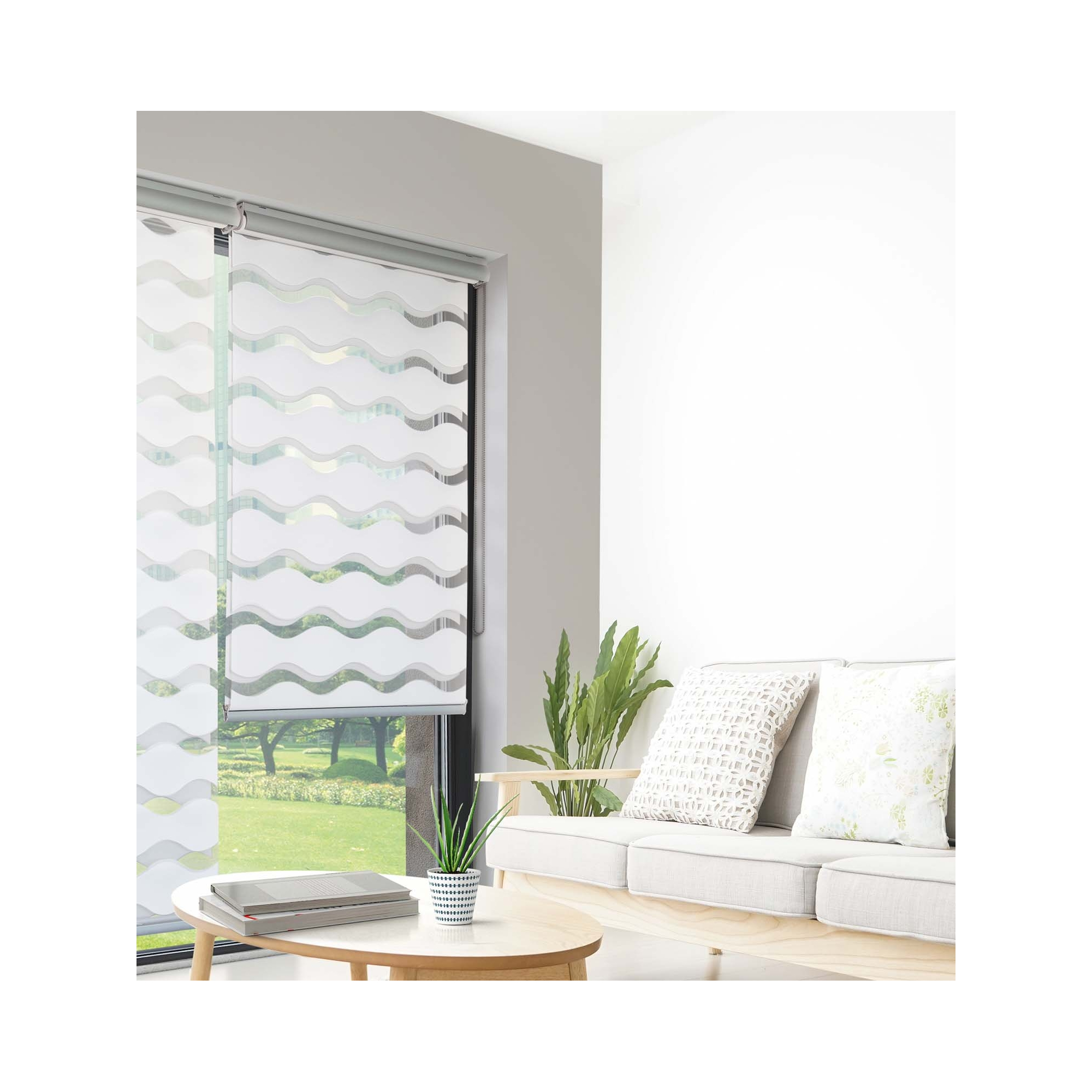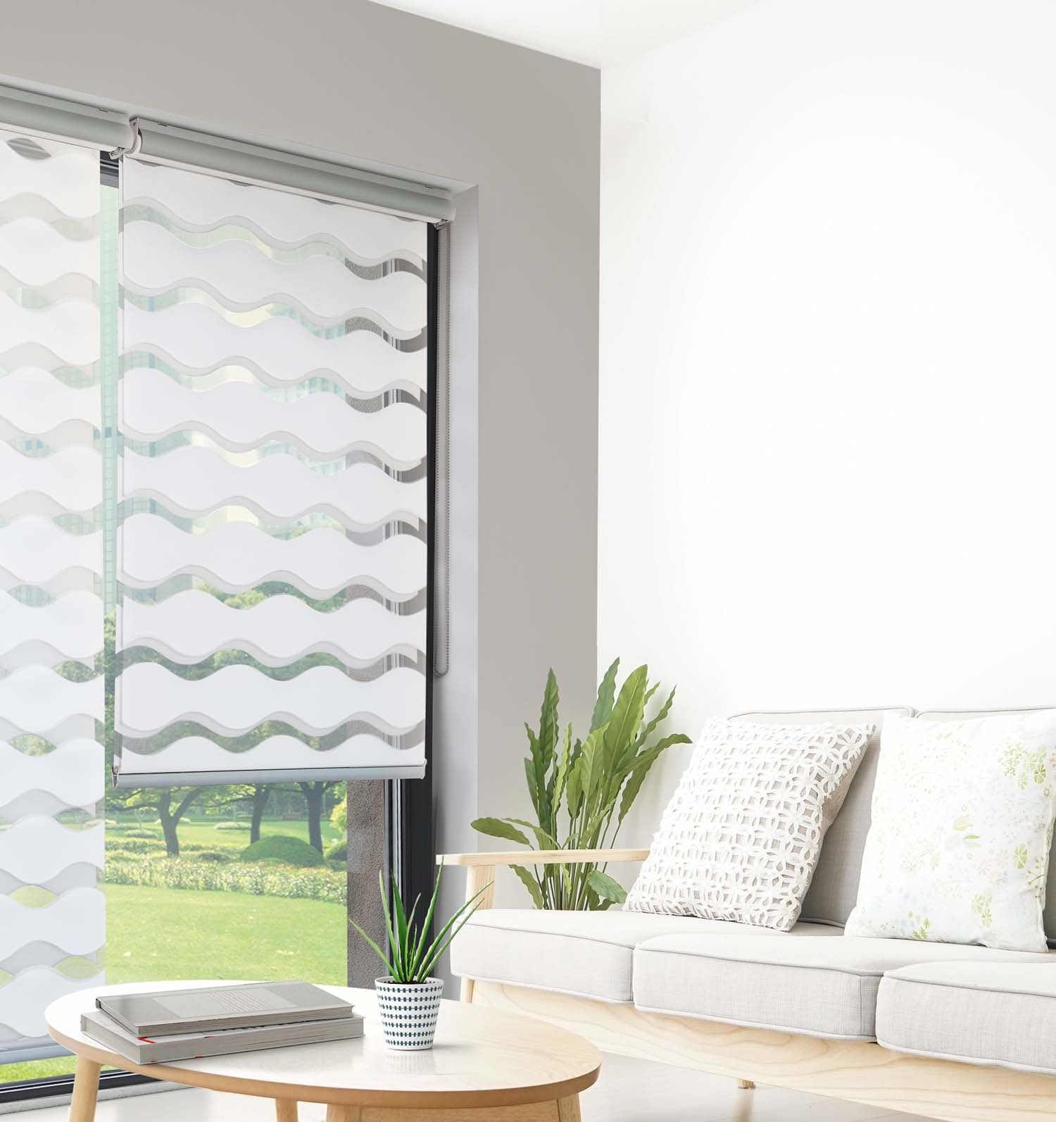 Le store jour nuit vague offre une luminosité originale avec une alternance de bandes de tissus ondulées.