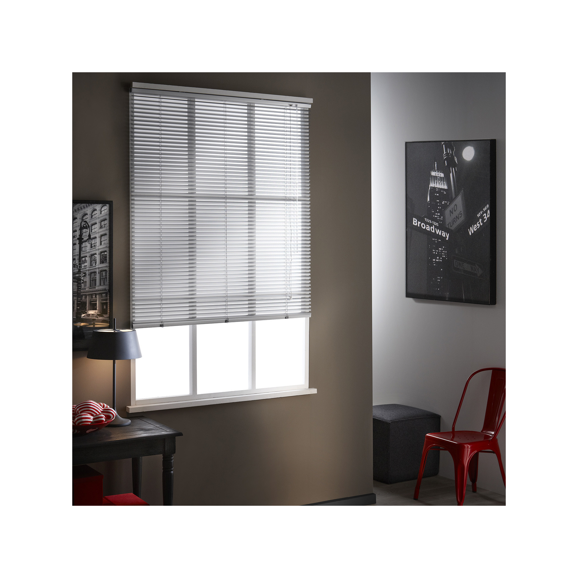 Apportez une touche de modernité dans votre intérieur grâce au store vénitien en aluminium. Doté de lamelles orientables, il est idéal pour doser finement la lumière et vous protéger des regards extérieurs en cas de vis-à-vis. La corde et la tige d'orientation vous aideront à régler la hauteur de votre store.