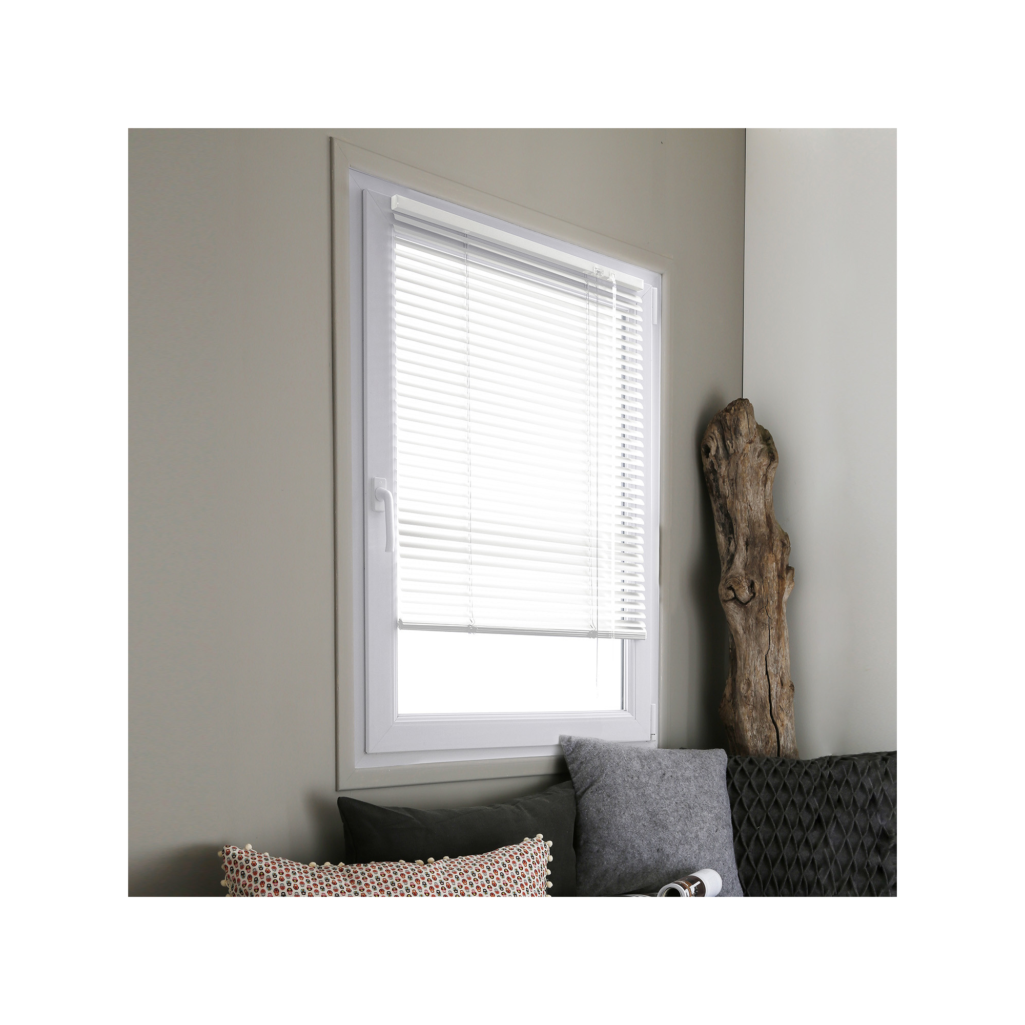 Vous souhaitez maintenir votre store vénitien sur une fenêtre oscillo-battante : Utilisez l'accessoire V8